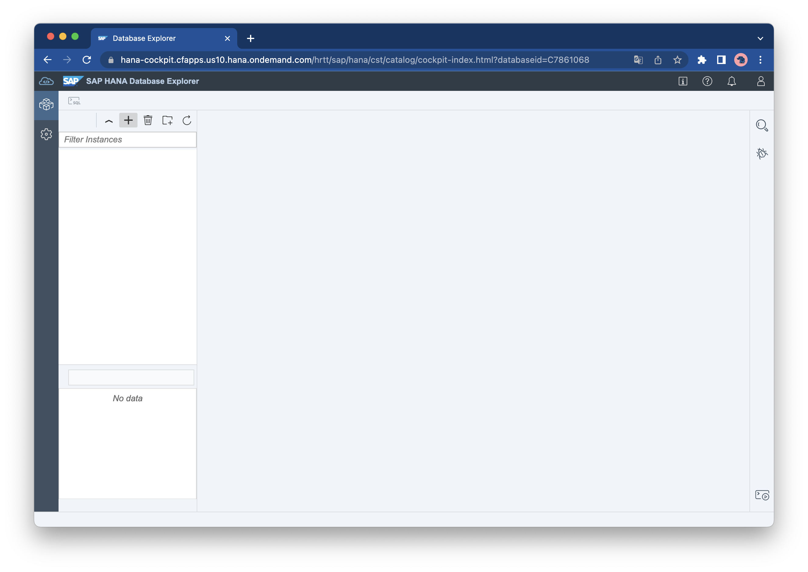 배포 결과를 확인하기 위해 DB Explorer에 접속하여 좌측 상단의 + 버튼을 클릭하여 배포 된 HDI Container를 추가한다.