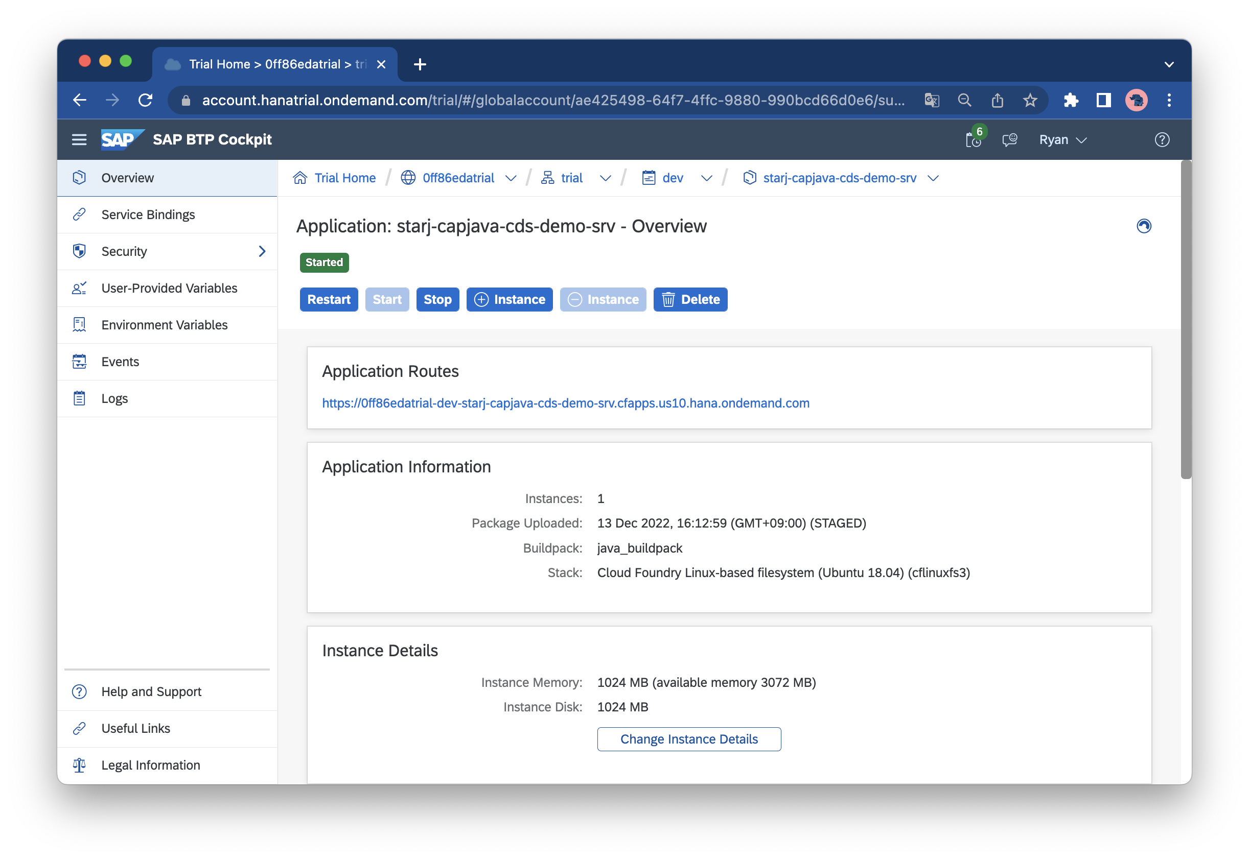 CDS 배포 성공 후 CAP Java Application을 BTP에 배포한다.